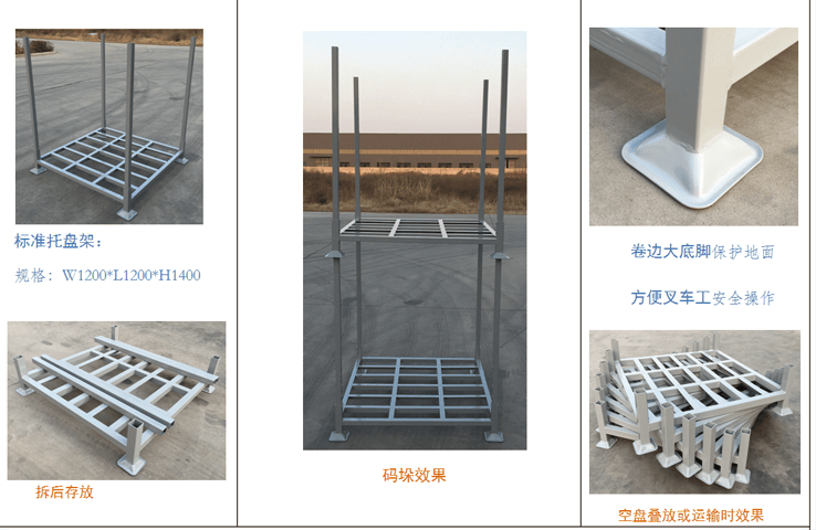 產品自重:托盤架自重70kg,欄柵6根總重量12kg。